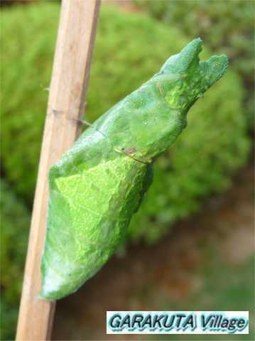 他の蛹の写真の、糸が掛かっている位置と比べてみて下さい。