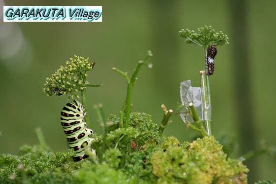 デカイ面構えのナガサキアゲハの幼虫が見つかったら逮捕して、飼育箱牢屋でキアゲハと同居させ、サナギになってもらうことにしましょう。