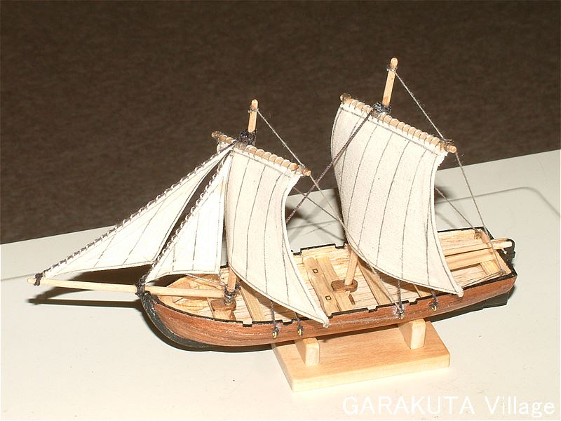 玉子のパックを切り刻んでみたり、アレコレやってみましたが、昨年作った帆船模型のボートのカツラ方式を思い出して、作ってみました。